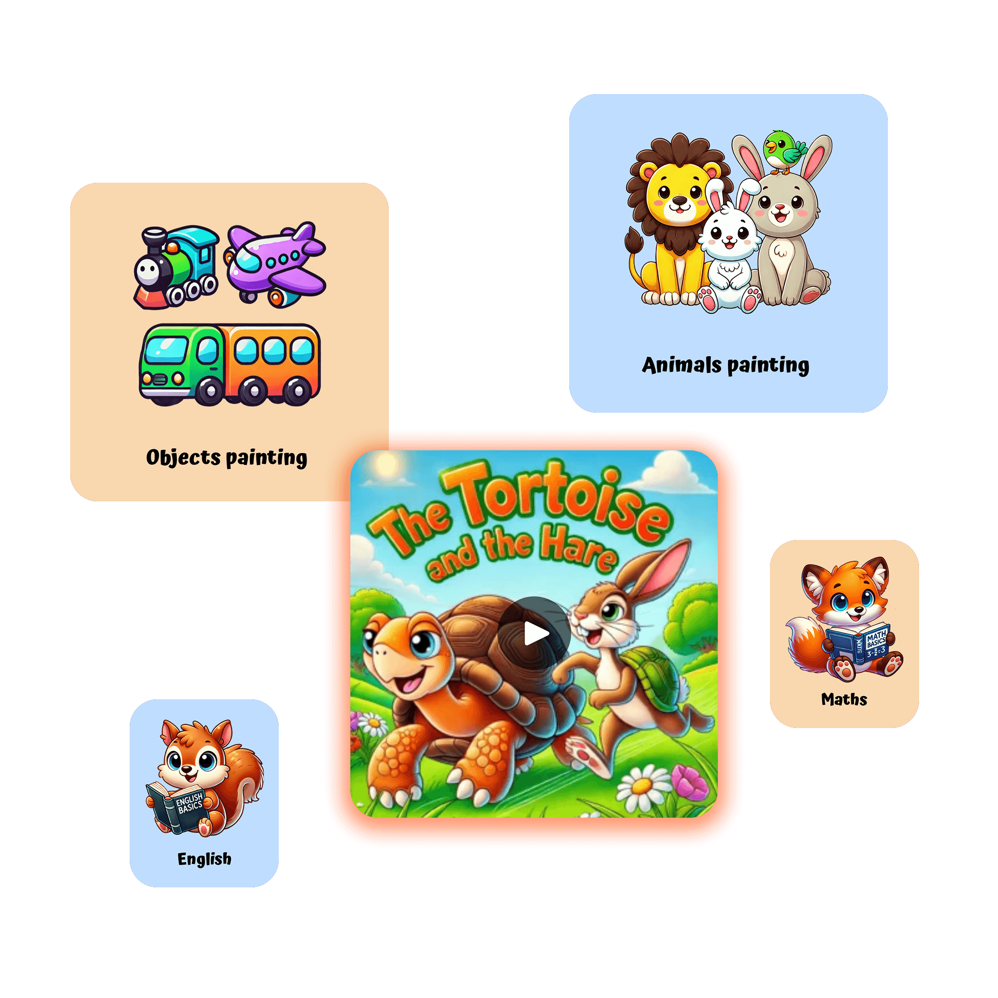 Our app blends advanced artificial intelligence with proven teaching methods, helping kids explore language, math, science, art, and stories in a way that feels like playtime.